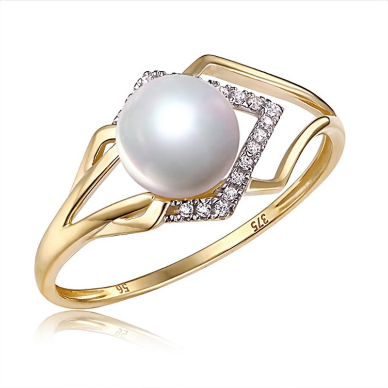 Rrp: $ $ 2000- 9Ct Yellow Gold Diamond & Natural White Button Pearl Ring Size 7. The Item Contains: Ring Size Is: 7