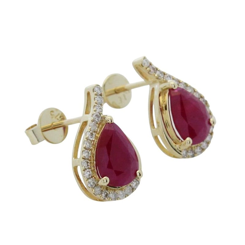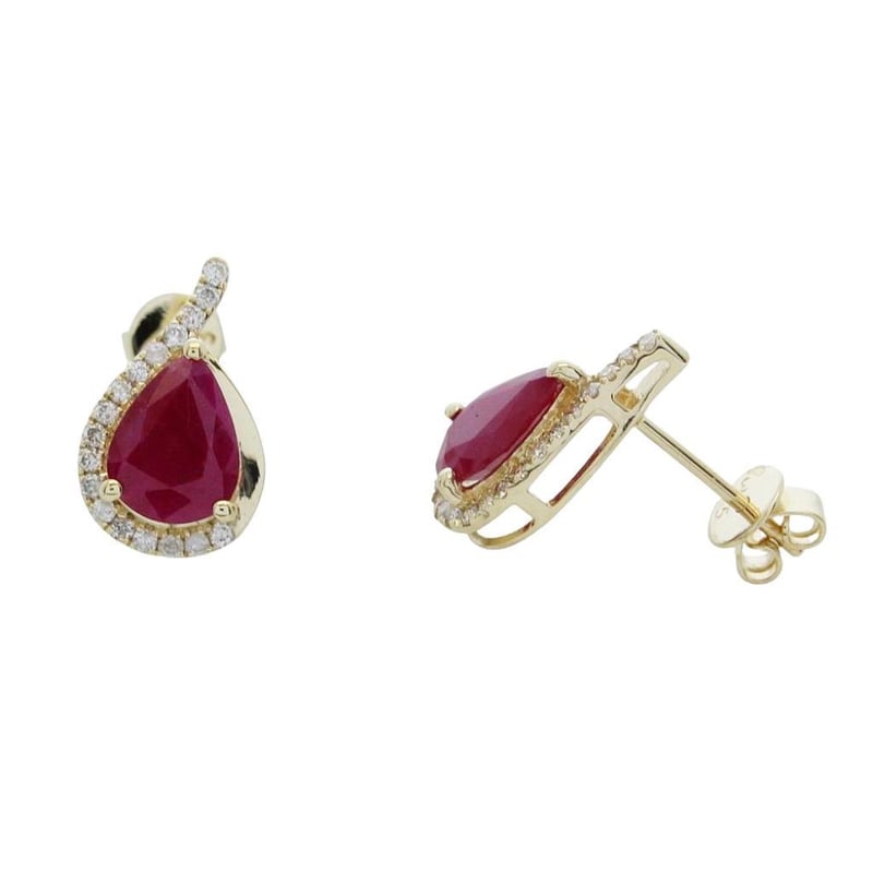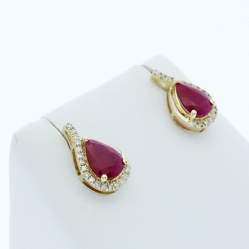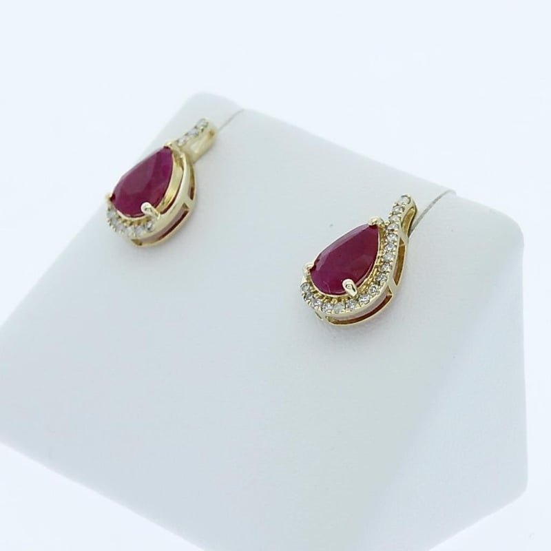 9CT YELLOW GOLD NATURAL DIAMOND & RUBY EARRINGS 9Ct Yellow Gold Natural Diamond & Ruby Earrings The Item Contains: 2 Ruby = 2.40 Carat34 Diamonds = 0.23 CaratEarrings Weight: 2.00 Grams Condition : Excellent Condition: Good - Refer Images 0488157+21