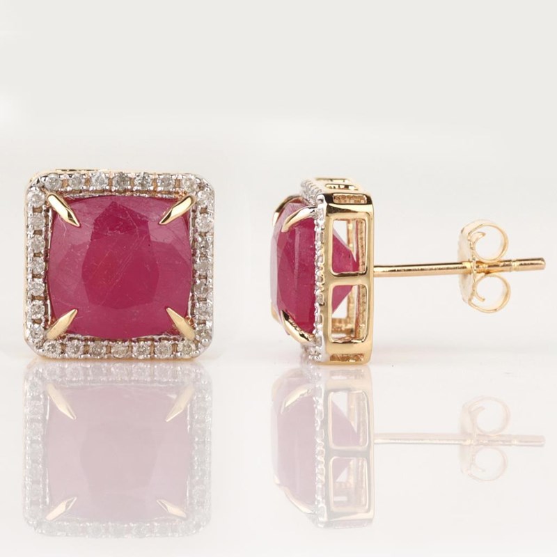 9CT YELLOW GOLD NATURAL RUBY & DIAMOND EARRINGS Weight Of The Item: 3.39 GFineness Of Metal(S): Yellow Gold 9KtThe Earrings Consists Of (2) Cushion Brilliant Natural Ruby. Surrounding The Main Stones Are Round Brilliant Cut Natural Diamonds.Identification: Natural RubyColor: RedShape: Cushion Brilliant CutNo. Of Stone: 2Dimension: 8 Mm X 8 Mm X 4.8 MmWeight: 7.25 CaratsCut: Very GoodIdentification: Natural DiamondShape: Round Brilliant CutWeight: 0.28 CtsCertificates Are Provided By Gemological Science International (Gsi), An Independent Third-Party Gemological Laboratory Based In The Usa And Recognised Among The Top 10 Gem Labs Globally Condition: Good - Refer Images 0160841+16