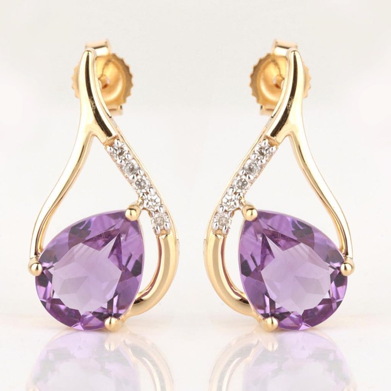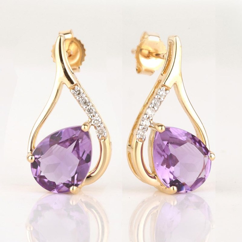 9CT YELLOW GOLD NATURAL AMETHYST & DIAMOND EARRINGS Weight Of The Item: 2.53 GFineness Of Metal(S): Yellow Gold 9KtThe Earrings Consists Of (2) Pear Brilliant Natural Amethyst. Surrounding The Main Stones Are Round Brilliant Cut Natural Diamonds.Identification: Natural AmethystColor: PurpleShape: Pear Brilliant CutNo. Of Stone: 2Dimension: 9 Mm X 7 Mm X 5.4 MmWeight: 2.9 CaratsCut: Very GoodIdentification: Natural DiamondShape: Round Brilliant CutWeight: 0.1 CtsCertificates Are Provided By Gemological Science International (Gsi), An Independent Third-Party Gemological Laboratory Based In The Usa And Recognised Among The Top 10 Gem Labs Globally Condition: Good - Refer Images 0160841+27