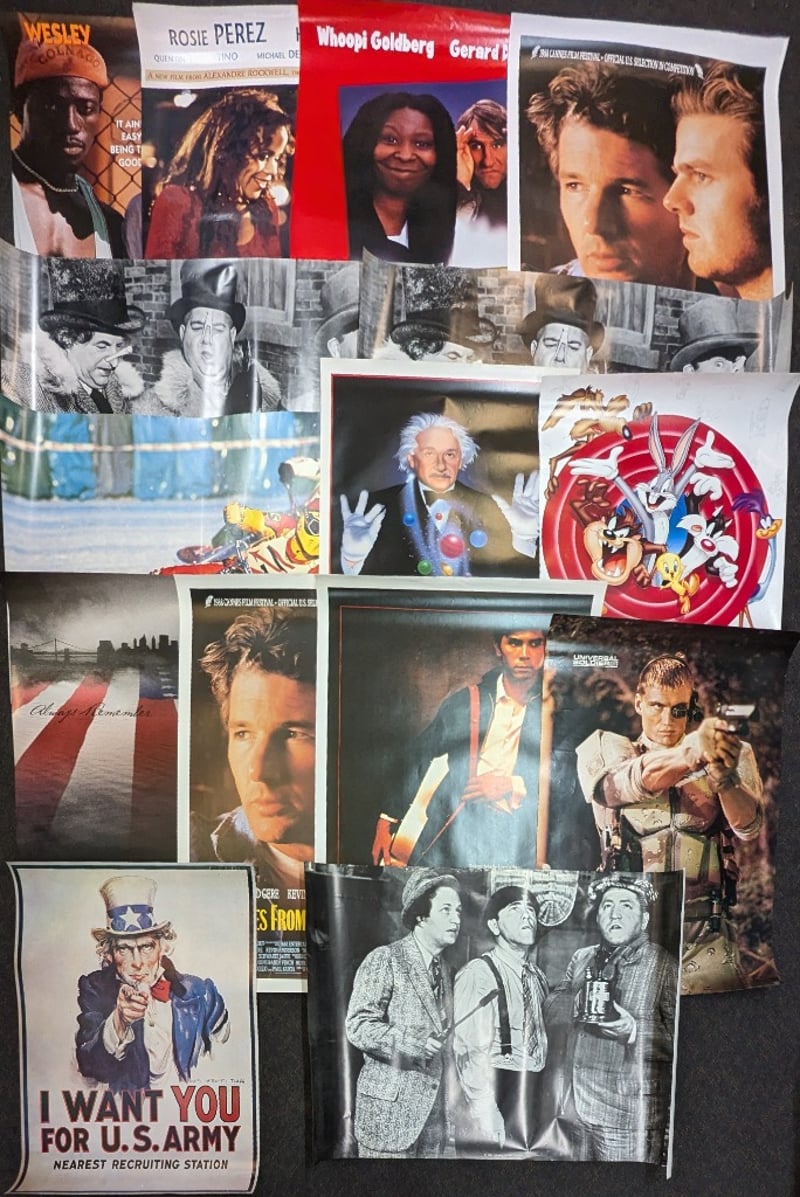 Posters Include 'White Men Cant Jump', 'Somebody To Love', 'Bogus', 'Miles From Home', Three Stooges, 'The Cosmic Magician - Albert Einstein', 'Looney Tunes', 'Always Remember September 11 2001', 'La Bamba', 'Universal Soldier', Uncle Sam Poster