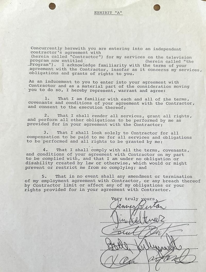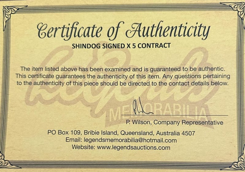 SHINDOGS SIGNED CONTRACT The Shindogs Contract Personally Signed By Band Members. The Shindogs, The "House Band" For The Rock And Roll Television Show Shindig!, Were Actually A Revolving Group Of Live And Studio Musicians From The Los Angeles Area. This Constantly Changing Lineup Included Delaney Bramlett, Joey Cooper, James Burton, Glen D. Hardin, Chuck Blackwell, Glenn Campbell, Billy Preston, Leon Russell, And Larry Knechtel. The Item Is Accompanied By A Certificate Of Authenticity. Condition: Good - Refer To Images 584939+40