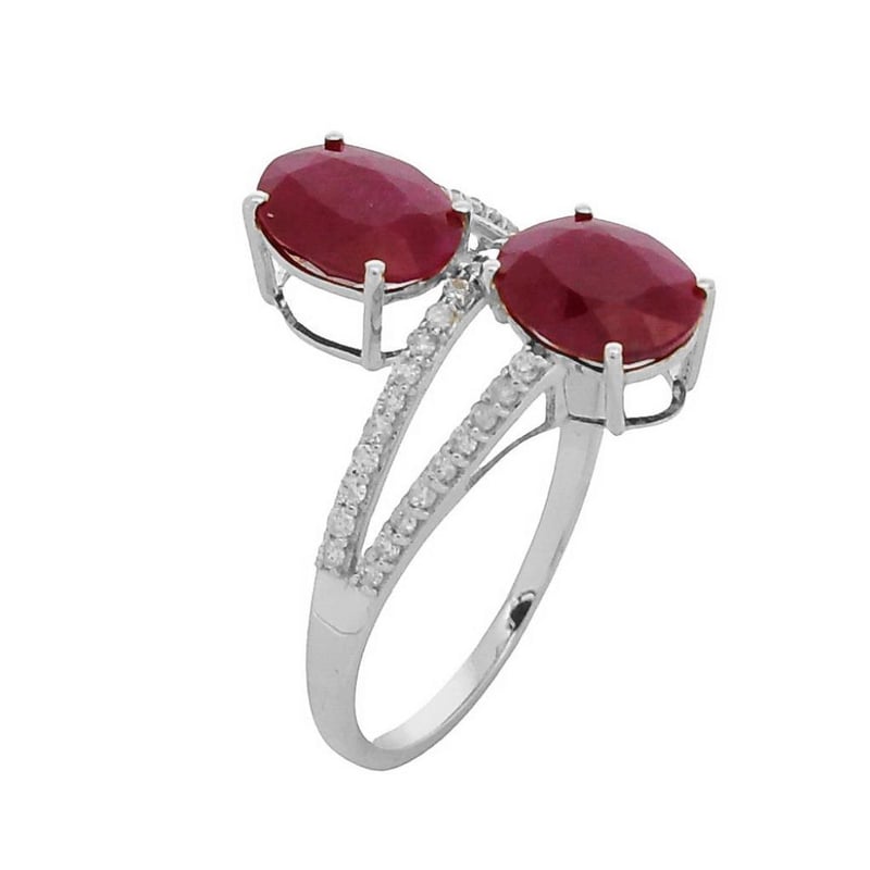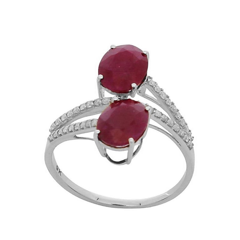 9Ct White Gold Natural Diamond & Ruby Ring