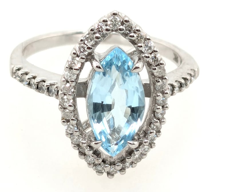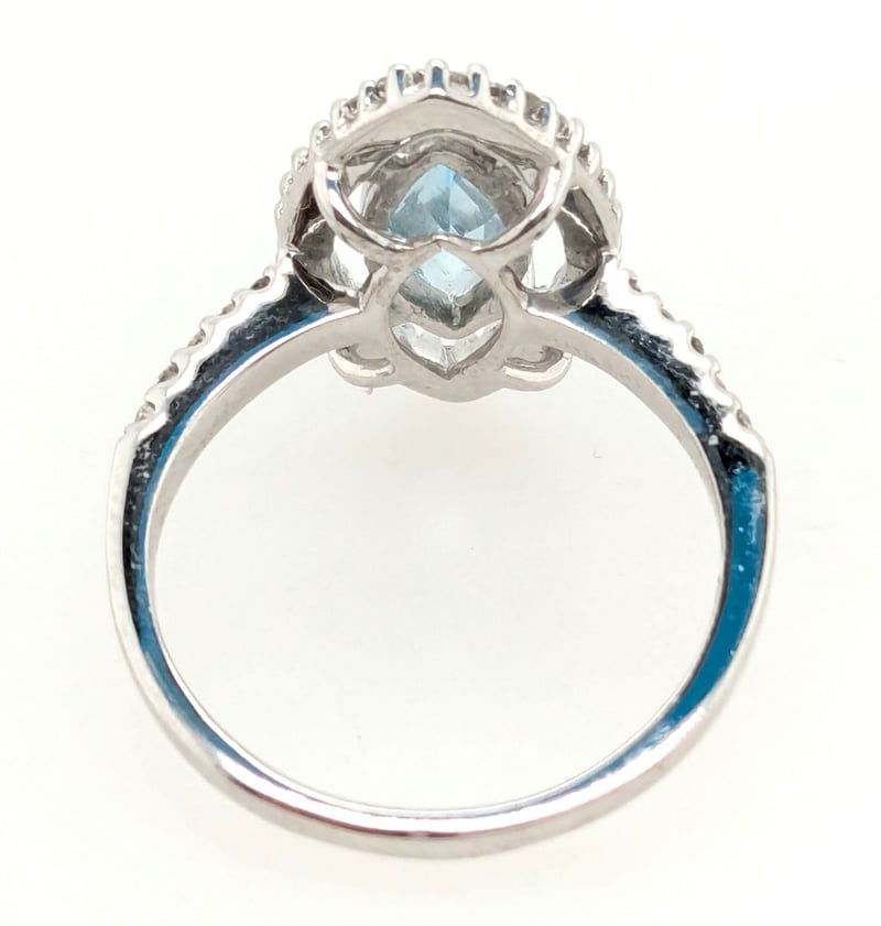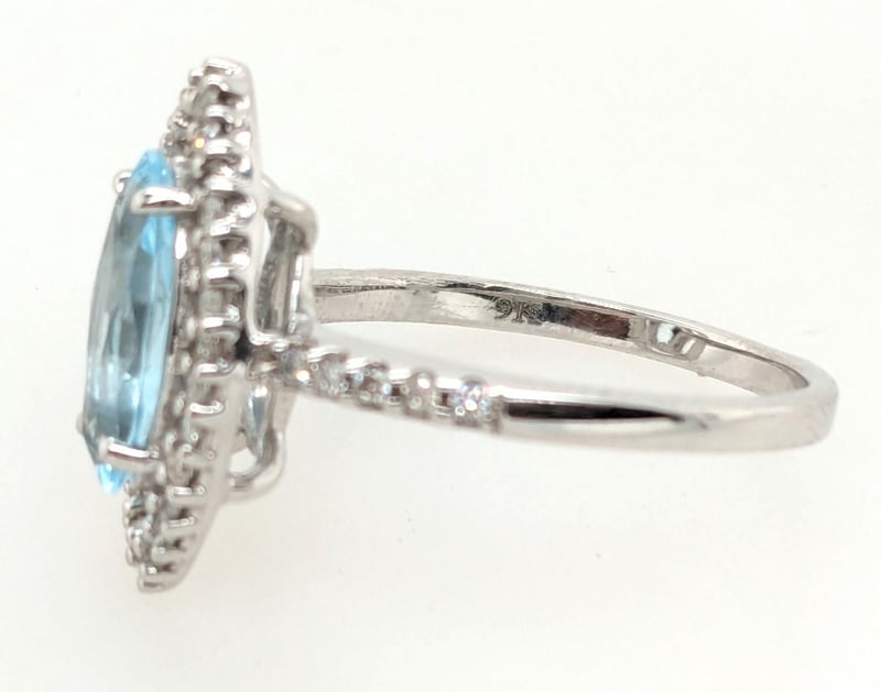 9KT WHITE GOLD RING WITH 1.54CT OVAL AQUAMARINE DIAMOND