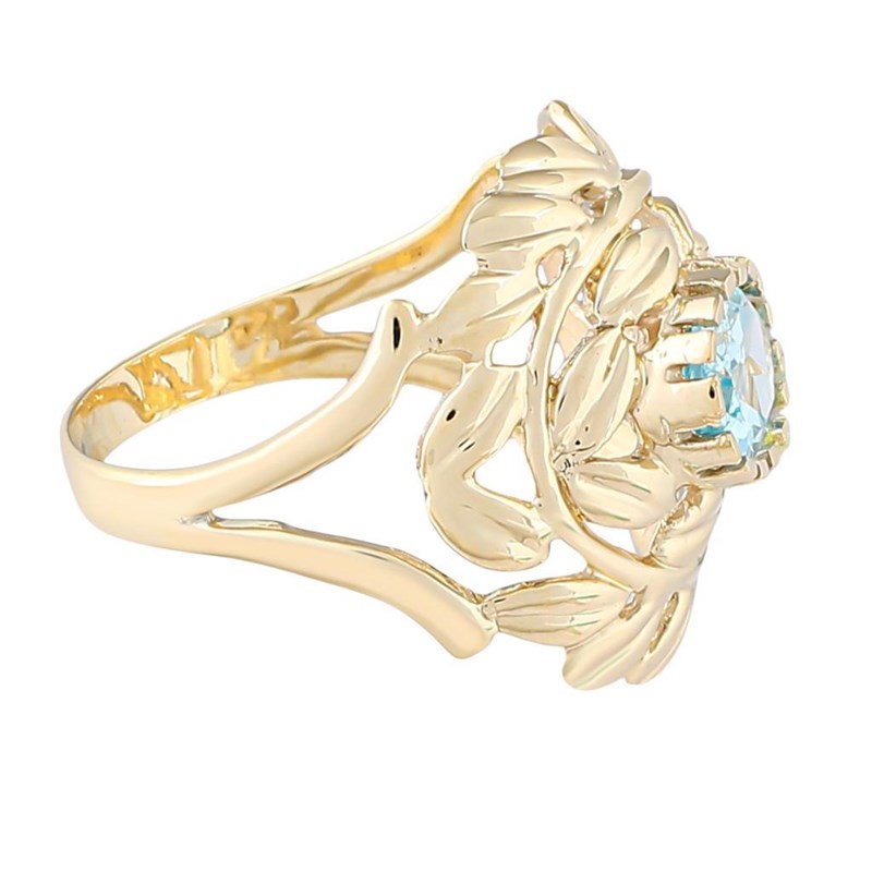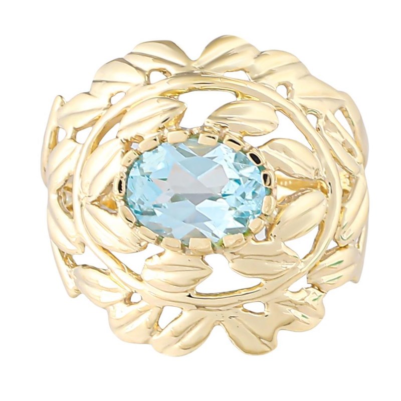9CT YELLOW GOLD NATURAL SKY BLUE TOPAZ RING Weight Of The Item: 3.35 G Fineness Of Metal(S): Yellow Gold 9Kt The Ring Consists Of (1) Oval Faceted Natural Sky Blue Topaz & (12) Round Brilliant Cut . Antique Style Identification: Natural Sky Blue Topaz / Natural Color: Blue / Shape: Oval Faceted Cut / Round Faceted Cut No. Of Stone: 13 Dimension: 8 Mm X 6 Mm X 4.8 Mm Weight: 1.1 Carats 0 160640+55