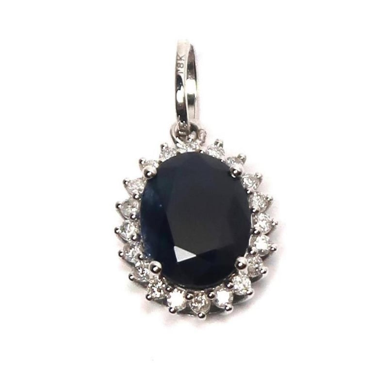 18K WHITE GOLD NATURAL DIAMOND & SAPPHIRE PENDANT 18K White Gold Natural Diamond & Sapphire Pendant The Item Contains: 1 Sapphire = 2.28 Carat20 Round Brilliant Diamonds = 0.14 Carat Pendant Weight: 1.20 Gram Condition: Good - Refer Images 0488157+45