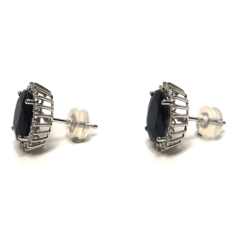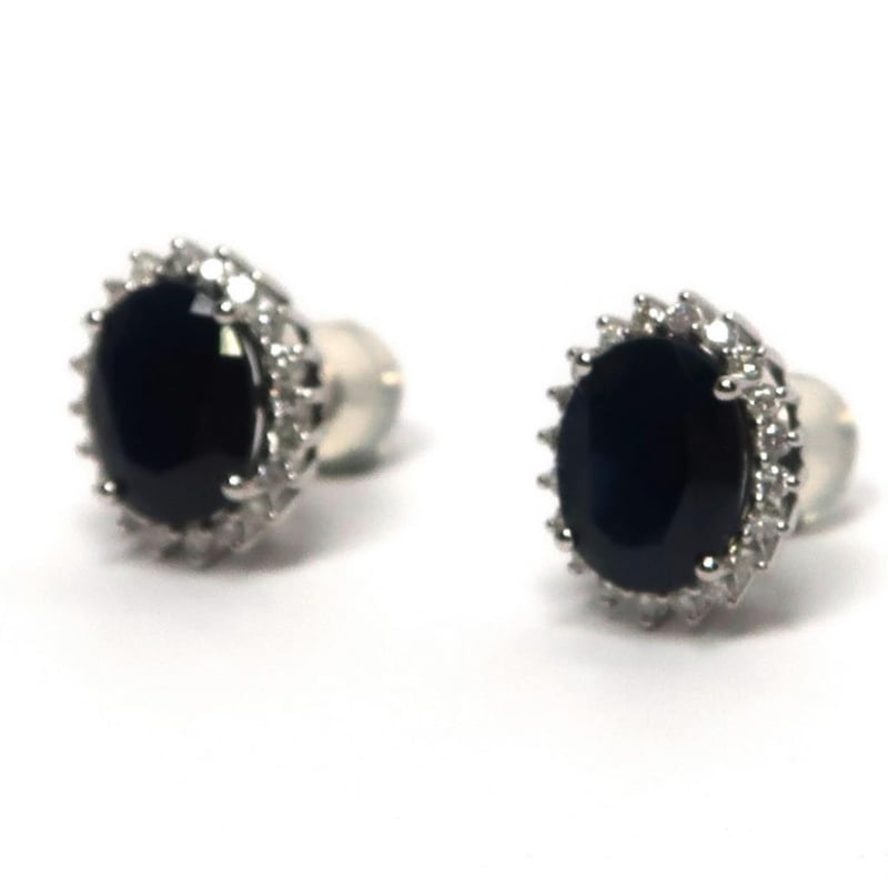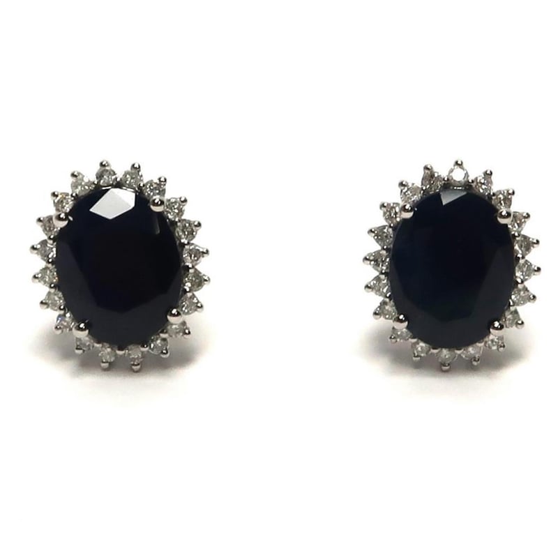 18K WHITE GOLD NATURAL DIAMOND & SAPPHIRE EARRINGS 18K White Gold Natural Diamond & Sapphire Earrings The Item Contains: 2 Sapphire = 4.51 Carat40 Round Brilliant Diamonds = 0.29 Carat Earrings Weight: 2.60 Grams Condition: Good - Refer Images 0488157+44
