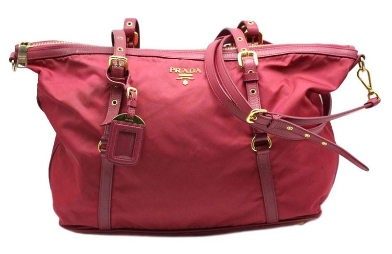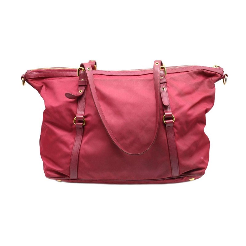 PRADA RED SAFFIANO LEATHER TRIMMED NYLON TESSUTO TOTE BAGLength: 42cmHeight: 29cmDepth: 14.5cmHandle Drop: 21cm AdjustableStrap Drop: 48cm Detachable AdjustableCrossed Docked155262+8