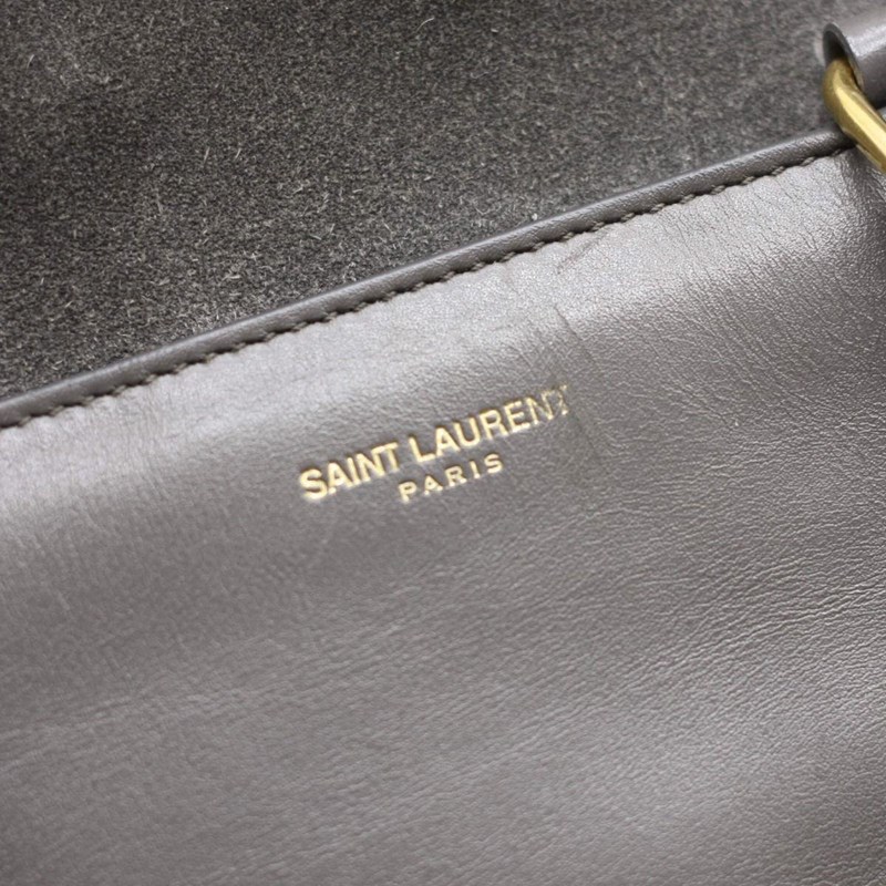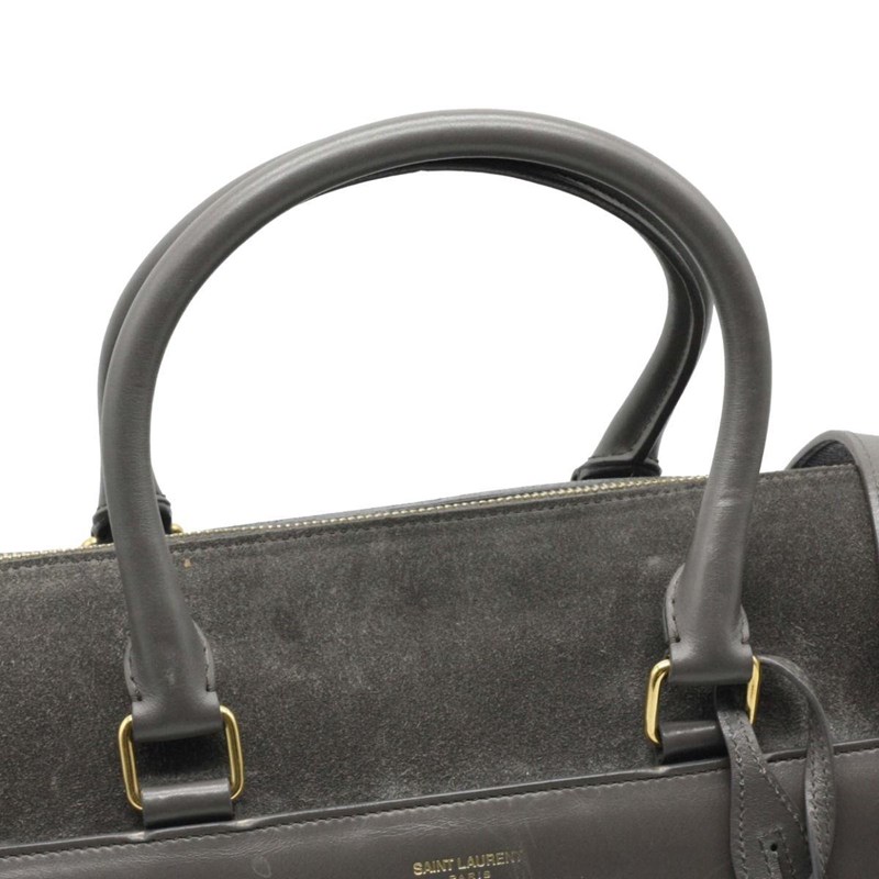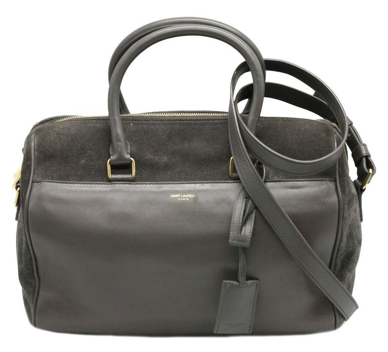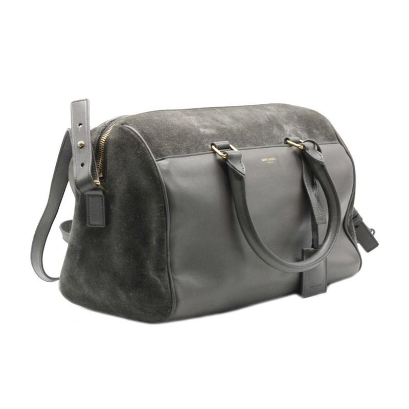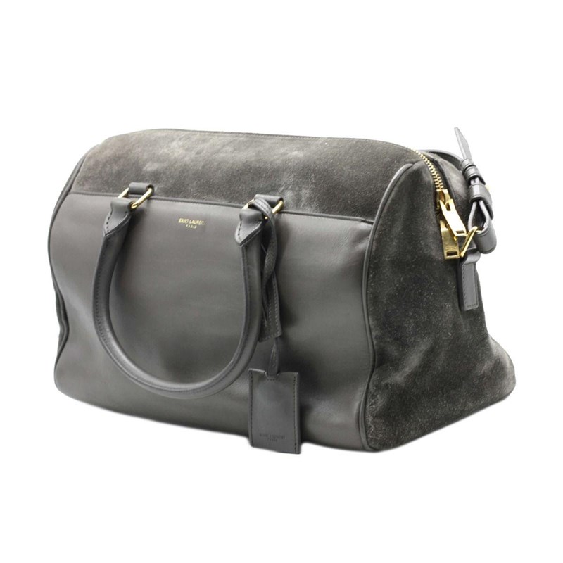SAINT LAURENT GREY LEATHER AND SUEDE BO DUFFLE BAGLength: 38cmHeight: 25cmDepth: 16cmHandle Drop: 10cmStrap Drop: 46cm Detachable AdjustableExterior MaterialLeather and suede with gold-tone hardware, dual rolled top handles, top zip closure and protective metal feet.Interior MaterialSuede lining with a main compartment and a zipped pocket.Additional Condition Report- Moderate wear, scratches and scuffs on exterior- Visible scuffs and creases on exterior corners- Moderate wear and scuffs on interior- Minor scratches and tarnished on hardwareComes With- Original Dustbag- A Detchable Strap- Certificate of AuthenticityCROSSED DOCKED 155250+26