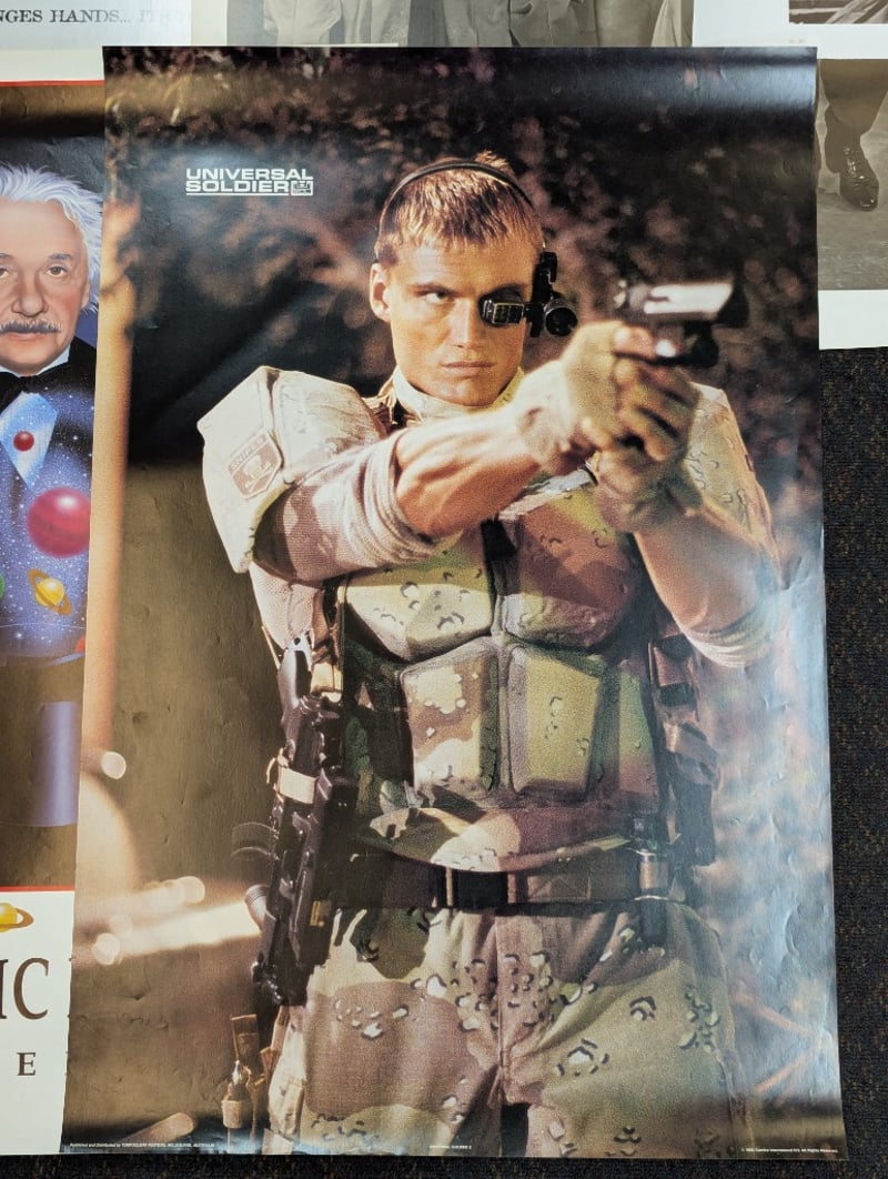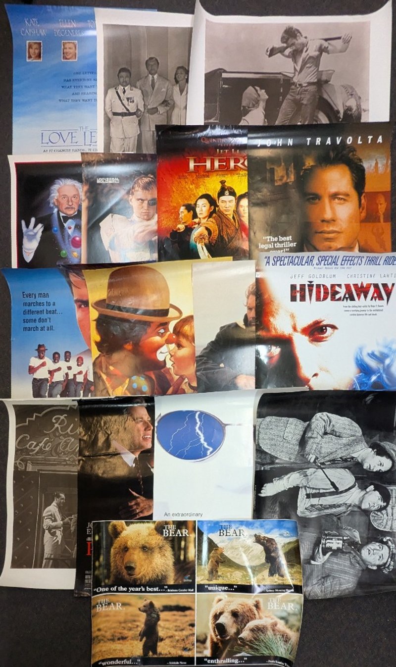 COLLECTION OF POSTERS Posters Include 'The Love Letter', Casablanca, Giant, 'The Cosmic Magician - Albert Einstein', 'Universal Soldier', 'A Civil Action', 'Hero', 'Cadence', 'Dances With Wolves', 'Hideaway', 'Powder', 'Primary Colors', Three Stooges, 'The Bear' Poster Lengths Range Approx: 90-100Cm Some Posters Have Tear And Wear 584886+12