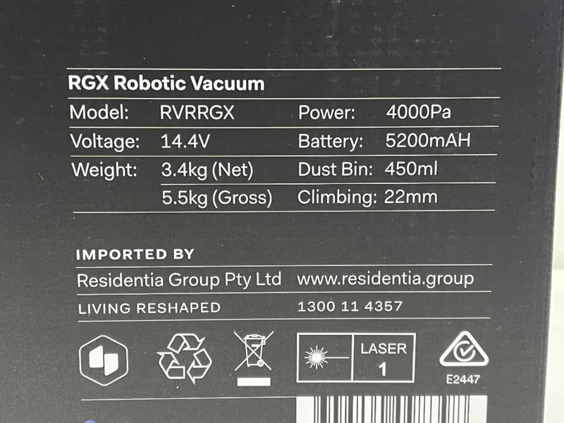 RRP $1499, Vacuum Robot, Residentia RGX, BlackModel: RVRRGXVoltage 14.4, Power: 4000pa, 450ml dust bin, voice control & app control.