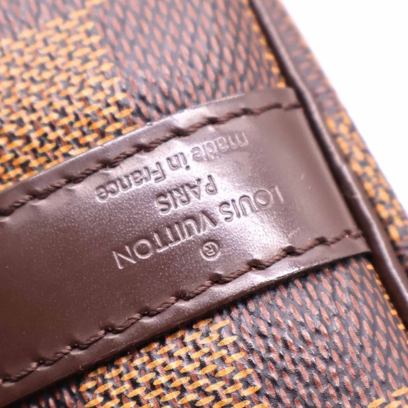 Damier Ebene Canvas With Gold-Tone Hardware, Dual Rolled Leather Top Handles, Top Zip Closure And Shoulder Strap.