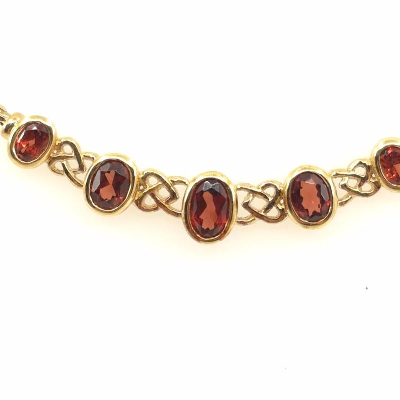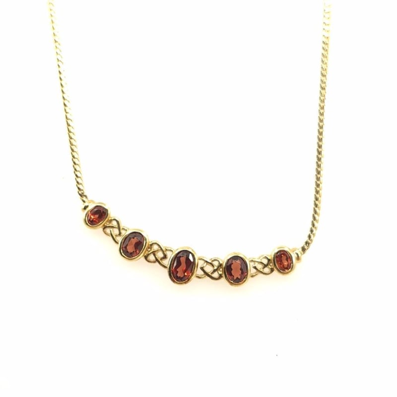 9CT GOLD WITH 5 ALMANDINE AQUAMARINE STONES