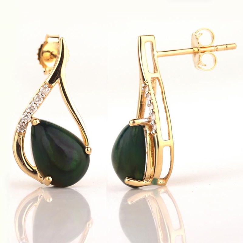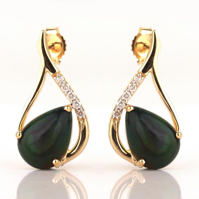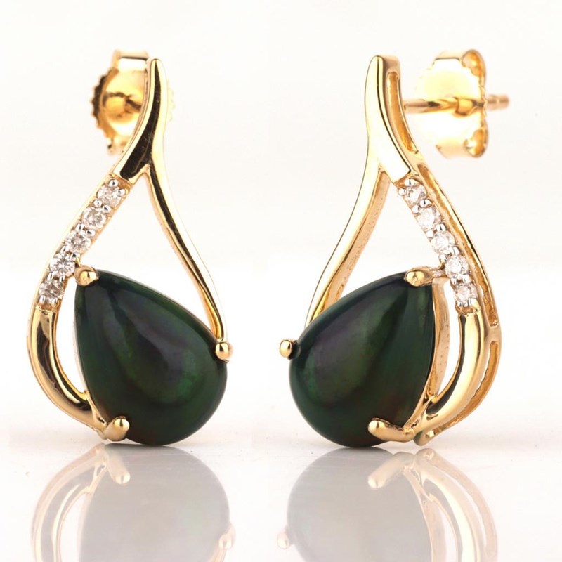 9CT YELLOW GOLD NATURAL BLACK OPAL & DIAMOND EARRINGS Weight Of The Item: 2.36 GFineness Of Metal(S): Yellow Gold 9KtThe Earrings Consists Of (2) Pear Brilliant Natural Black Opal. Surrounding The Main Stones Are Round Brilliant Cut Natural Diamonds.Identification: Natural Black OpalColor: BlackShape: Pear Brilliant CutNo. Of Stone: 2Dimension: 9 Mm X 7 Mm X 5.4 MmWeight: 2 CaratsCut: Very GoodIdentification: Natural DiamondShape: Round Brilliant CutWeight: 0.1 CtsCertificates Are Provided By Gemological Science International (Gsi), An Independent Third-Party Gemological Laboratory Based In The Usa And Recognised Among The Top 10 Gem Labs Globally Condition: Good - Refer Images 0160841+28