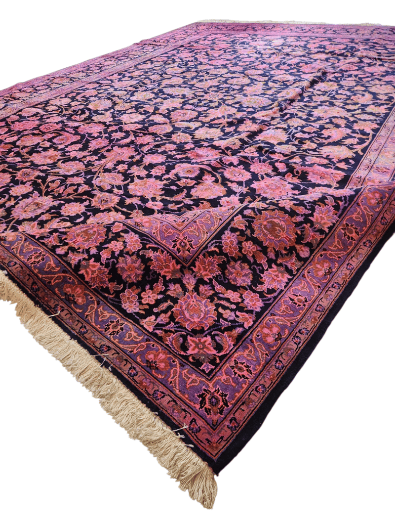 STUNNING VINTAGE DYED HAND KNOTTED PERSIAN KASHAN RUGStunning Vintage Dyed Hand Knotted Persian Kashan Rug. Pure Wool Pile.Size: 414X298 Cm. Rrp: $5,500Size: 414x298Condition: Good - Refer To Images488227+504