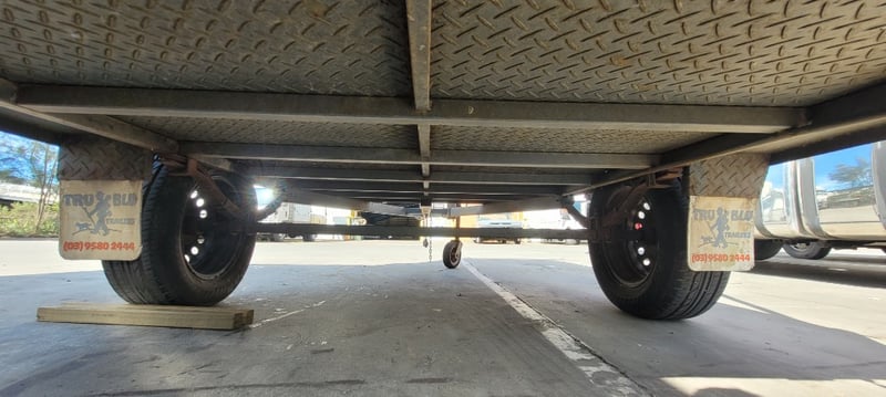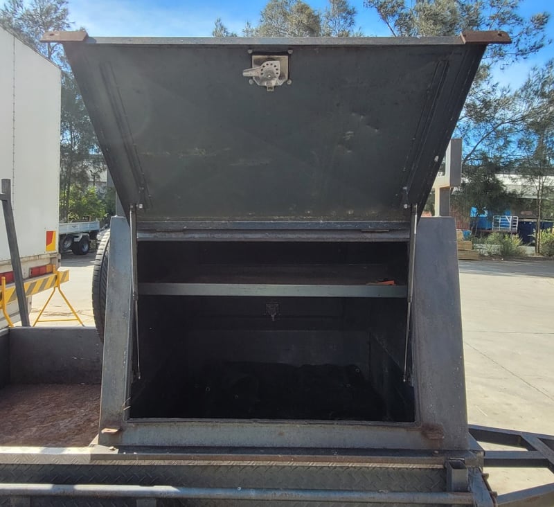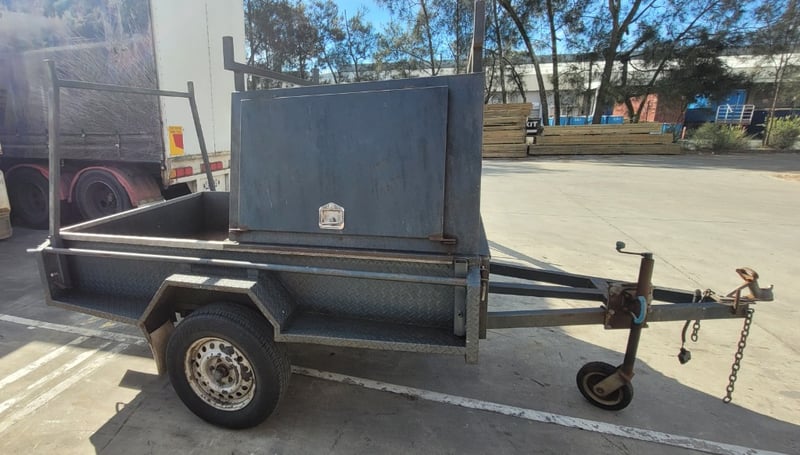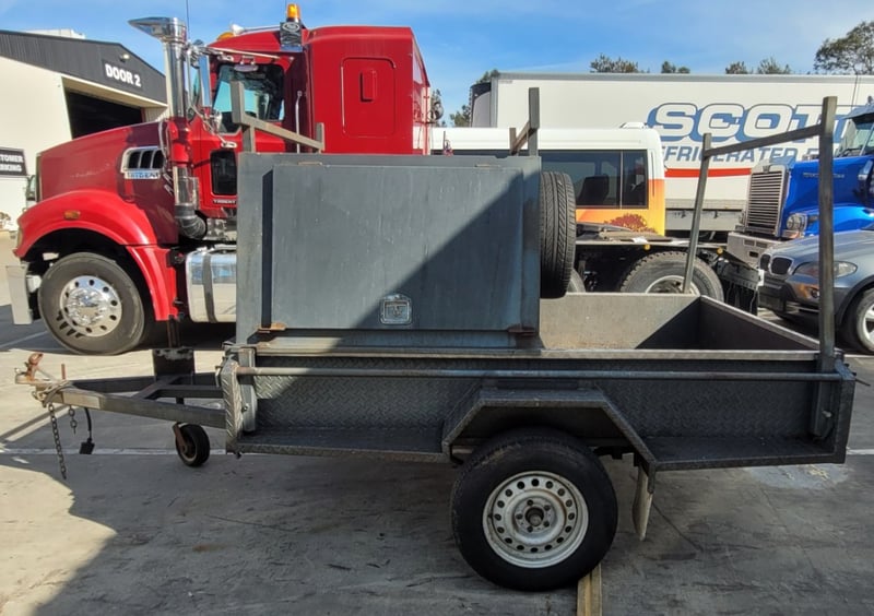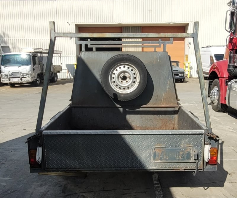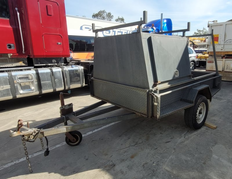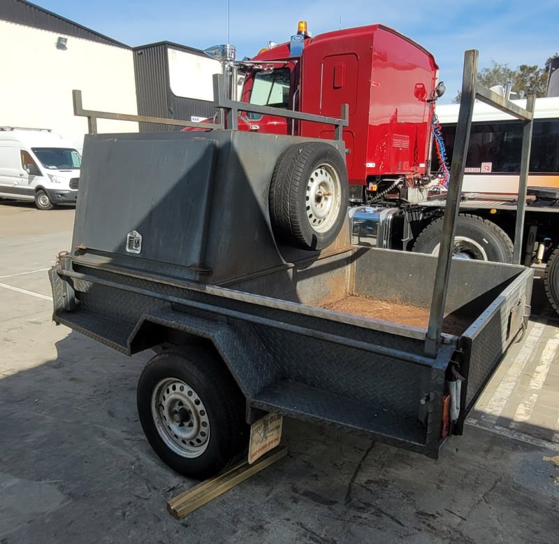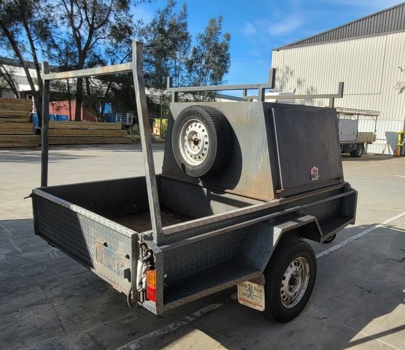 Description/Extras: Ladder racks, spear wheel, ball tow hitch, safety chain, 7 pin flat light plug, jockey wheel, dual side tool boxes.