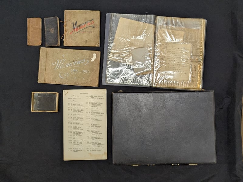 COLLECTION OF VINTAGE/ANTIQUE ITEMS Includes Diaries, Photo Albums (Albums Dated 1912-1919 & 1915-1919), Collection Of Anti-Screen Plates, Various Papers, Documents And Letters, Includes Combination Briefcase 584909+8