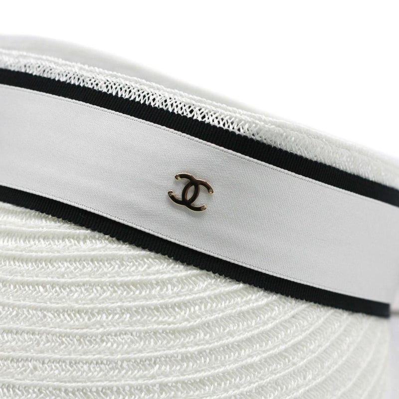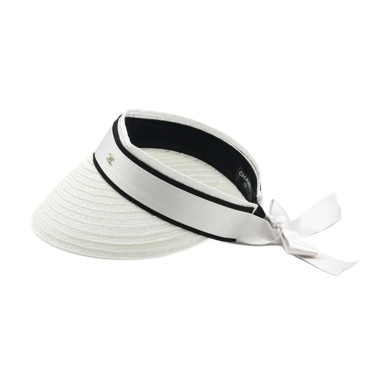CHANEL ABACA COTTON RIBBON VISOR SIZE S