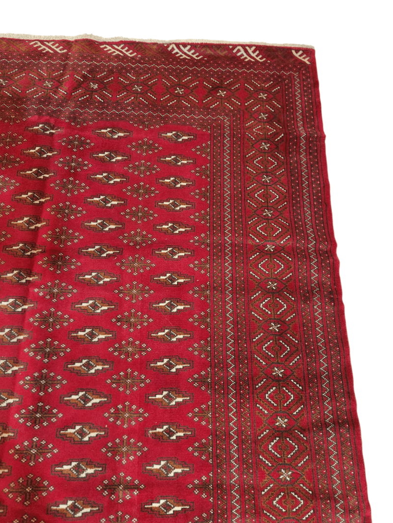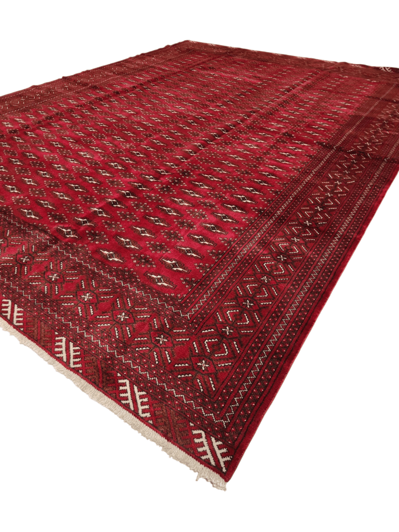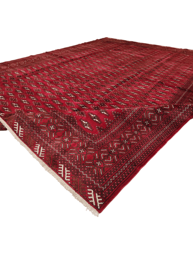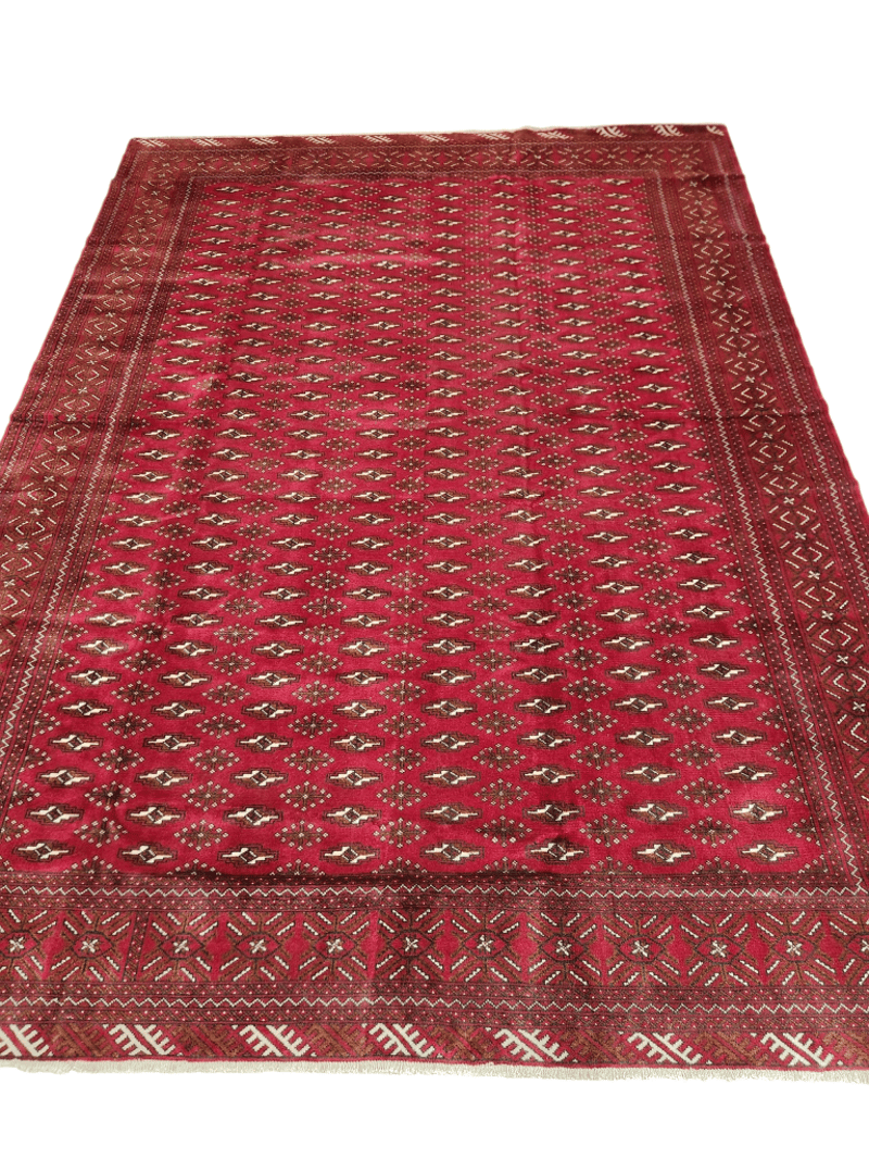 PERSIAN HAND KNOTTED TORKAMAN RUG Persian Hand Knotted Torkaman Rug.Hard Wearing Rug. Pure Hand Spun Wool Pile. Allover Design. Size: 336X254 Cm. Rrp: $3,950 Size: 336x254 Condition: Good - Refer To Images 488227+9