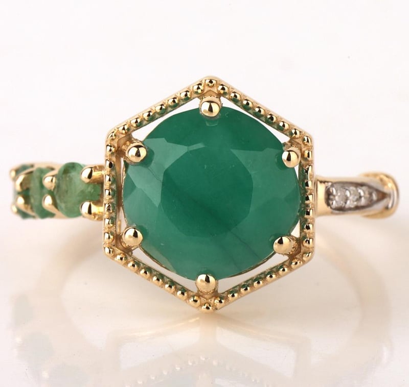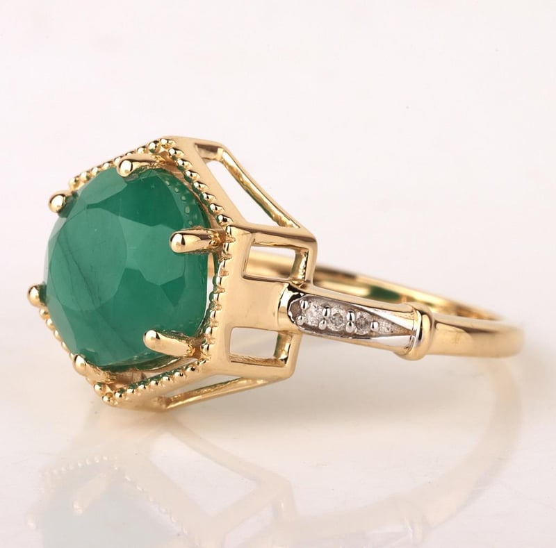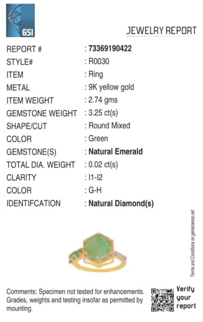 9CT YELLOW GOLD NATURAL EMERALD & DIAMOND RING