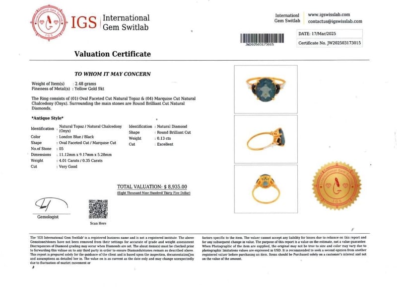 This valuation has been conducted by an independent third-party professional. The valuation amount is an assessment by the issuing valuer and does not reflect the auction value of the item.