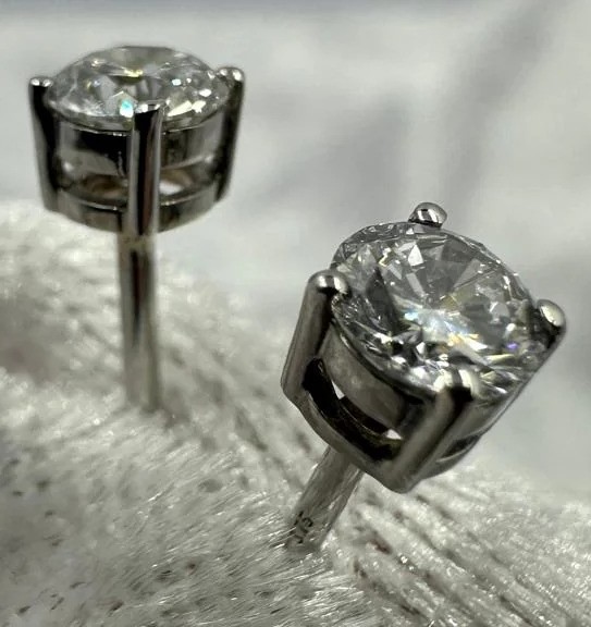 1.01 TCW 9K WHITE GOLD 4 PRONG STUD EARRINGS WITH SPRING LOCKS LAB GROWNDiamonds: 2 X 0.50 Ct Round Brilliant Stones. 1.01 Total Carat Weight. Lab Grown Diamonds. Shape: Round Brilliant Specs: E/Vvs2+ Quality 100% Eye Clean And Non Cloudy Setting: 9K White Gold 4 Claw Studs With SpringlocksCondition: Good - Refer To ImagesCROSSDOCK162955+1
