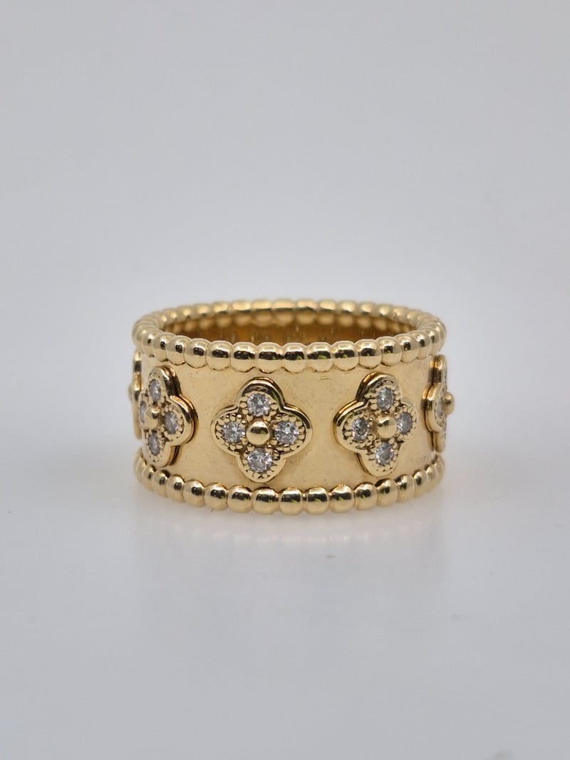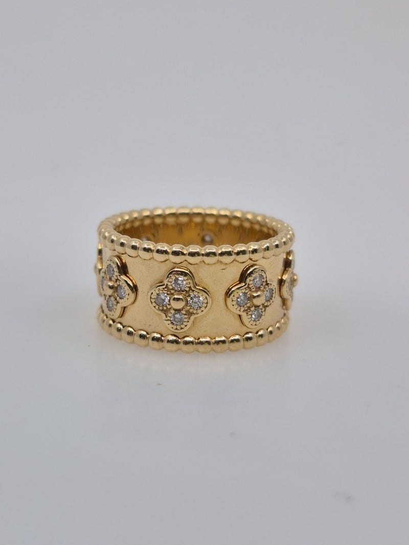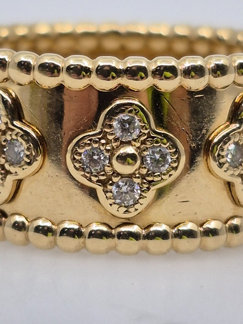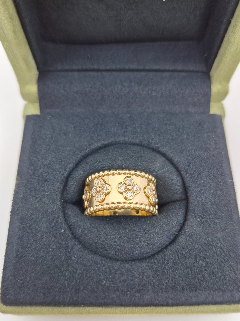 18K YELLOW GOLD, DIAMOND VAN CLEEF & ARPELS PERLEE CLOVERS RING MEDIUM MODEL Complete With Valuation Certificate Total Item Weight: 10.05g Markings: Vca 54 Je048730 Condition: Good - Refer To Images This valuation has been conducted by an independent third-party professional. The valuation amount is an assessment by the issuing valuer and does not reflect the auction value of the item. Any inquiries regarding the valuation should be directed to the issuing valuer (refer to contact details on the certificate), as Lloyds Auctions has no affiliation or influence over the valuation, the valuer, or the stated amount. Insurance Replacement Valuation Amount: $20,400.00 VAULT 586287+1
