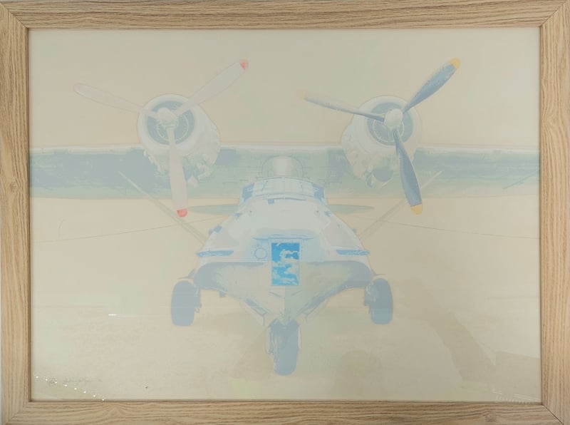 SCREENPRINT ON PAPER, FRAMED, CATALINA PLANE BY ANDREW TROLLOPE.