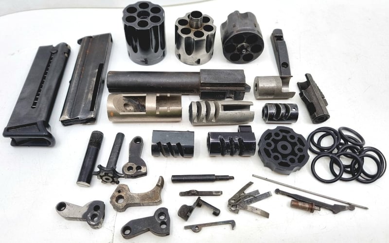 ASSORTED FIREARM ATTCHMENTS Includes: Magazines, Revolver Cylinders, Muzzle Attachments, Etc Condition: Fair - Refer To Images FC 990516+3