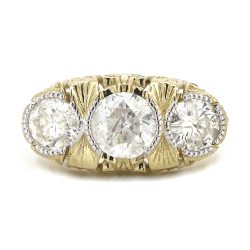 14K YELLOW GOLD AND DIAMOND, TRILOGY RING.