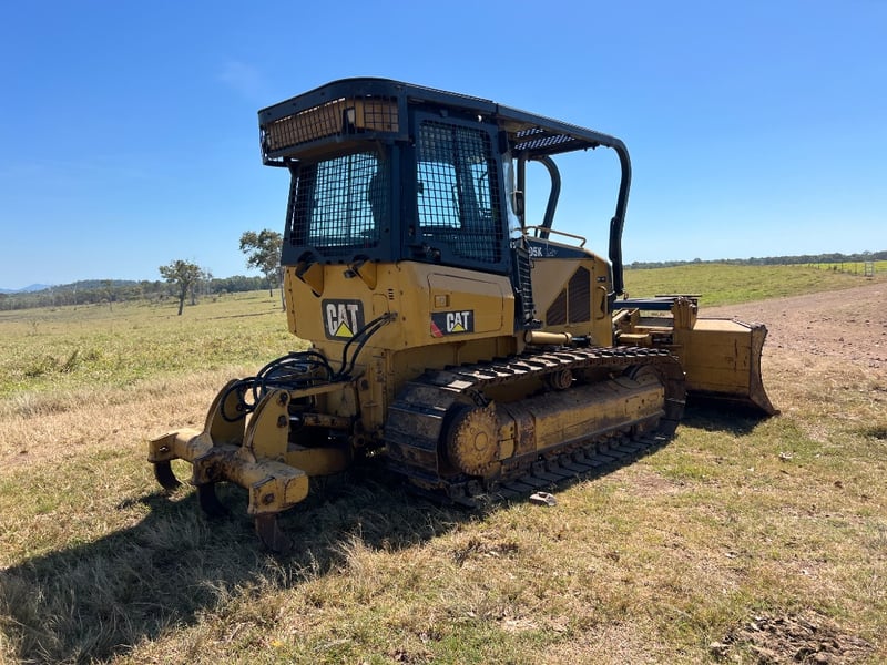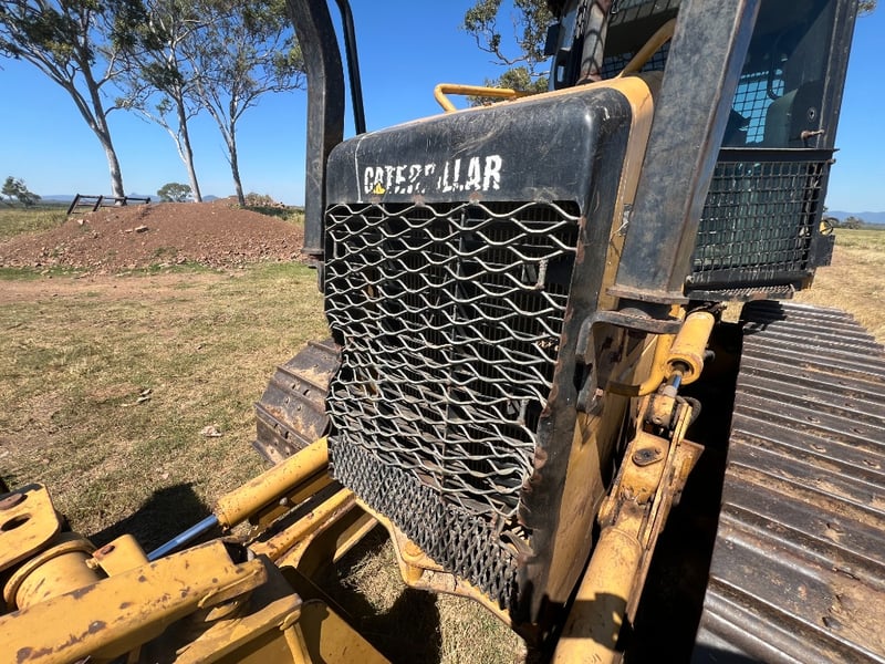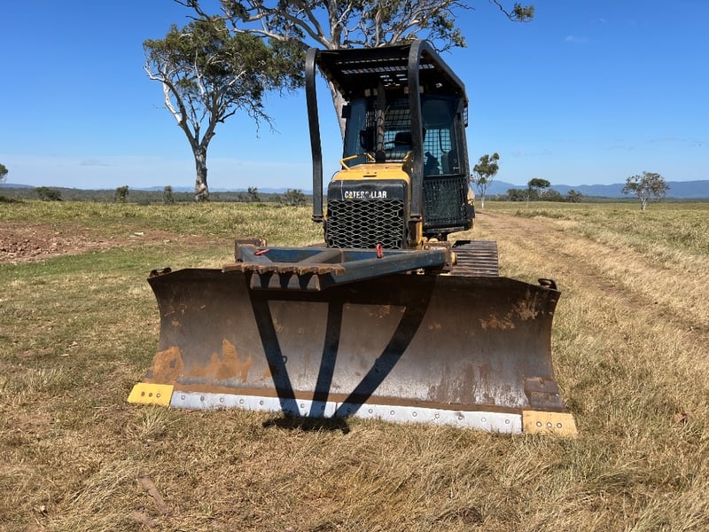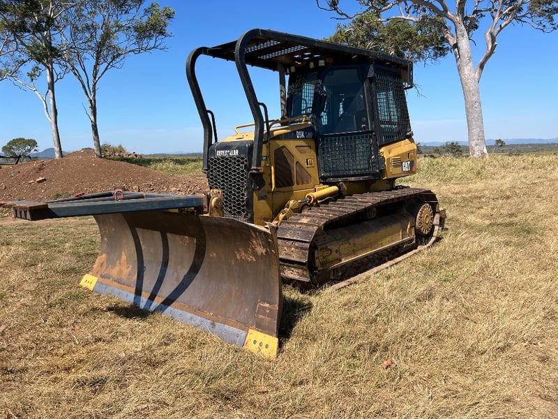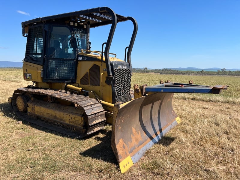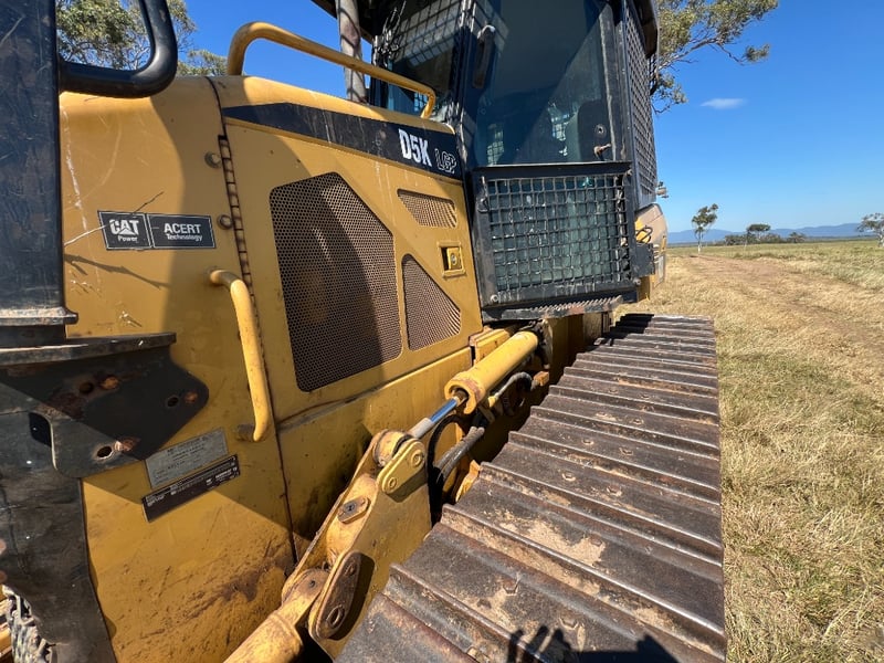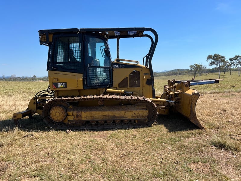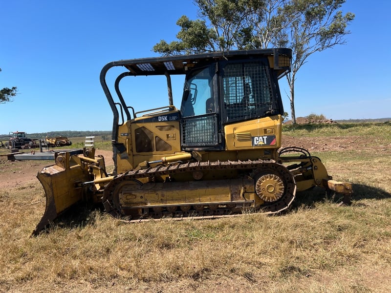 Description: Caterpillar D5K dozer, Comes with a walk Inn Stick Rack, shown in the Photos, Ideal size for property maintenance, clearing, track work and general earthmoving, 74.5 kW CAT diesel, Straight blade, Strong undercarriage, Fully enclosed ROPS-certified operator cabin, Heavy-duty window and roof guarding for added safety, High-back, adjustable suspension seat for operator comfort, Intuitive, ergonomically positioned controls, Excellent visibility to blade and work area, Clear, easy-to-read instrument display.