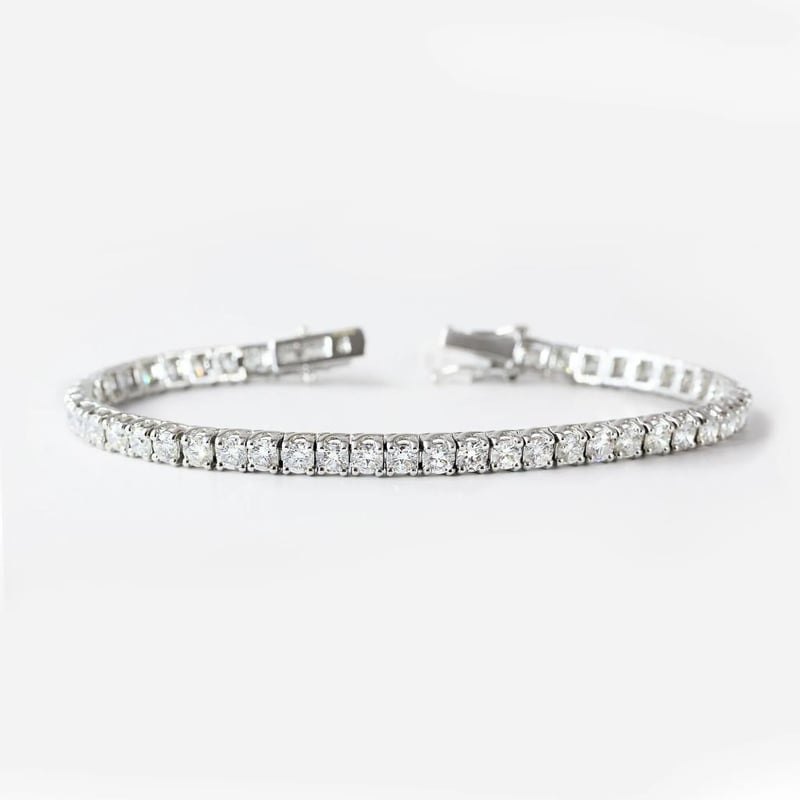925 SILVER TENNIS BRACELET, WHITE LAB GROWN DIAMOND Shape/CutRound BrilliantEstimated Carat Weight = +4.2 CaratColor Jewelry = D - EClarity = Vvs+ Markings: 925 Condition: Good - Refer Images 0162959+6CROSSDOCK