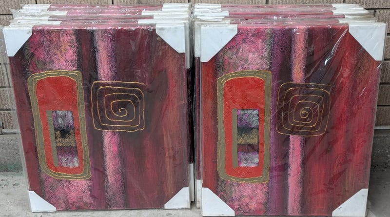 TWELVE OIL PAINTING ON CANVAS ARTWORKS Item Size: Height: 60cm, Width: 50cm Abstract Design With Spiral Style Shapes Artworks Stretched And Ready To Hang Condition: Good - Refer To Images 584844+54