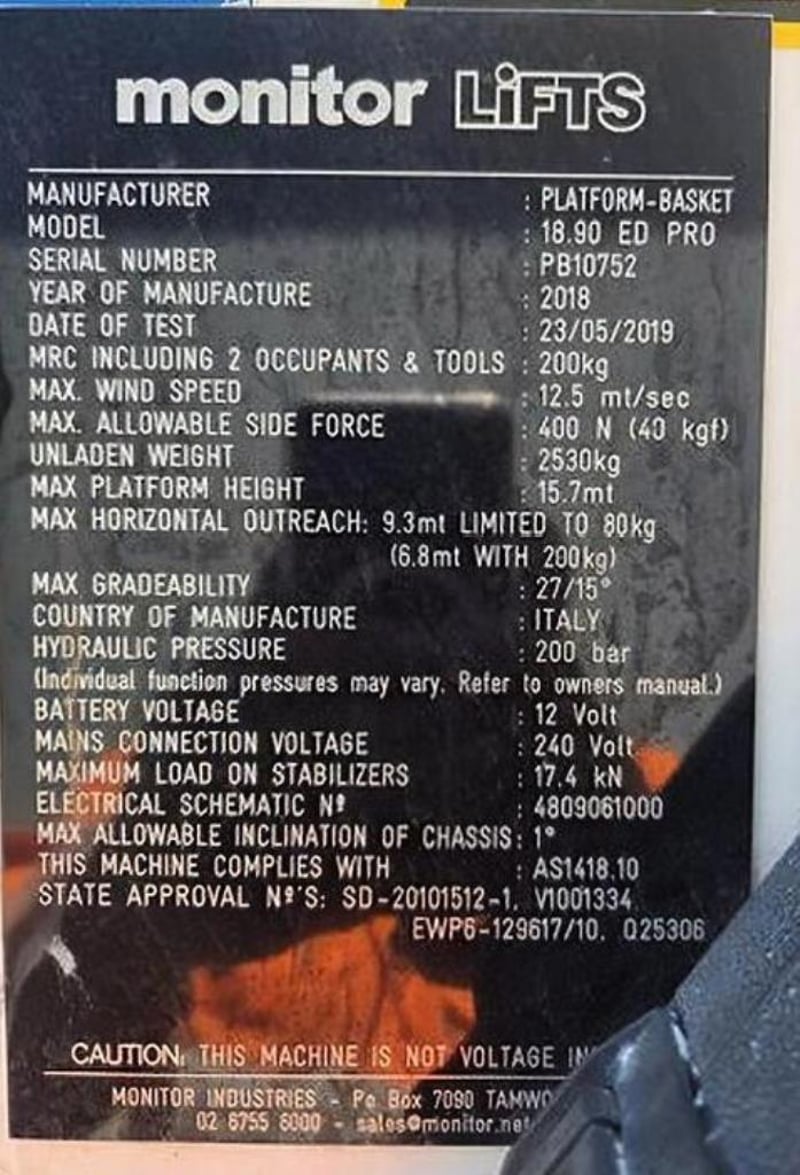 2018 Platform Basket 1890 ED Pro 18M Spider Lift Year: 2018 Make: Platform Basket Model: 1890 ED Pro Hours: Approx 1715hrs Category: EWP (Spider Lift) Drive Type: Tracked Fuel Type: Hybrid -Diesel/Electric Serial No: PB10752 Max Lift Height: 18m Max Capacity: 250kg Location: Gnangara WA Contact: Jamie 0486 045 295