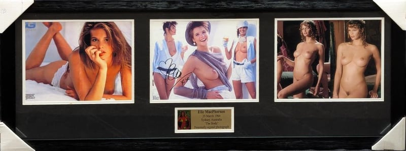 ELLE MACPHERSON SIGNED/FRAMED TOPLESS PHOTO SHOOT Elle 'The Body' Macpherson Personally Signed Topless Photo Collage 10 X 8 Photo. The Photo Has Been Framed With A Photo Shoot Print And Image From Her Role In The 1994 Film 'Sirens'. Measuring 970 X 320, This Is Ready To Hang. The Item Is Accompanied By A Certificate Of Authenticity. +13