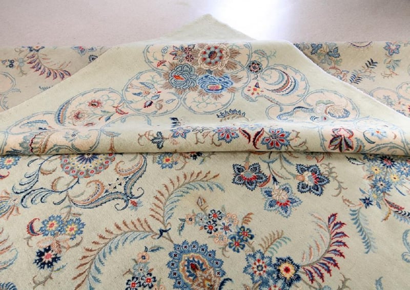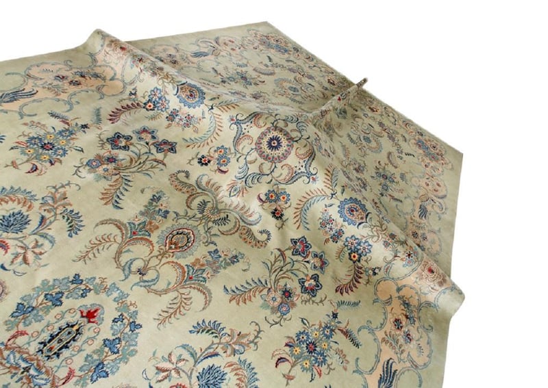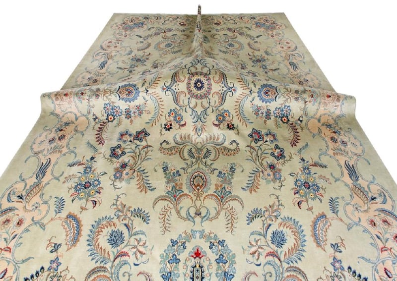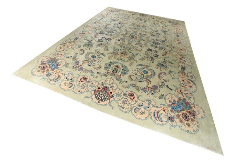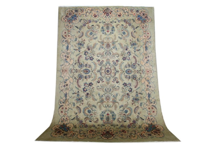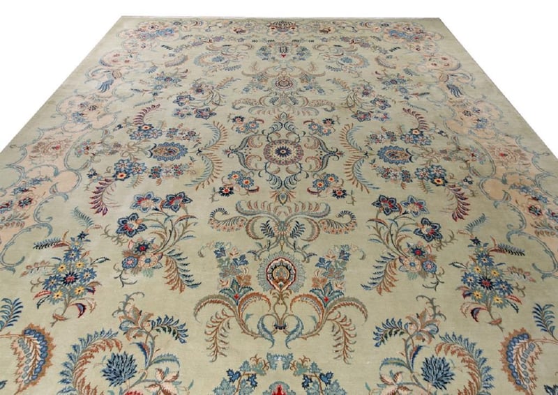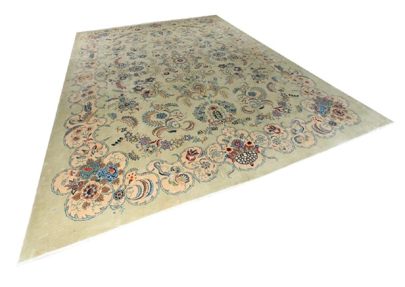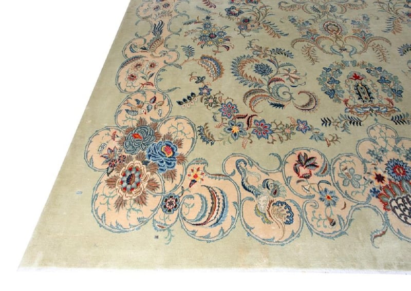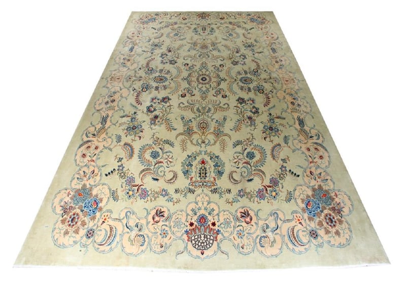 A VERY FINE PERSIAN DRABARI KASHAN RUG. A Persian Royal Darbari Kashan Carpet. 100% Lambs Wool Polished Pile, Very Solid And Densely Hand Knotted. In A Traditional Design Of A Central Medallion In Soft Tones Of Red. Sha Abbasi Palmettes In Tones Of Red And Persian Blue. Origin: Persia. Circa 1980S Rrp: $7200 Size: 435X325 Condition: Good - Refer To Images 488068+23