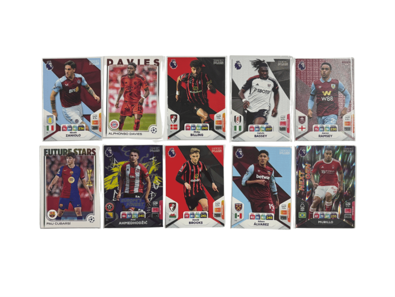 MODERN SOCCER CARD LOT (10) – FUTURE STARS & TOP TALENTS A Dynamic Selection Of 10 Modern Soccer Cards Featuring Young Talents And Rising Stars Including Alphonso Davies, Pau Cubarsí, Amhedhodzic, And More. Mix Of Premier League And Champions League Branding. - 10 Modern Football/Soccer Cards - Mix Includes Epl And Champions League Stars - Players Include Davies, Zaniolo, Brooks, And Almirón - Great Mix Of Base And Insert Cards Size: Condition: Good - Refer To Images +66