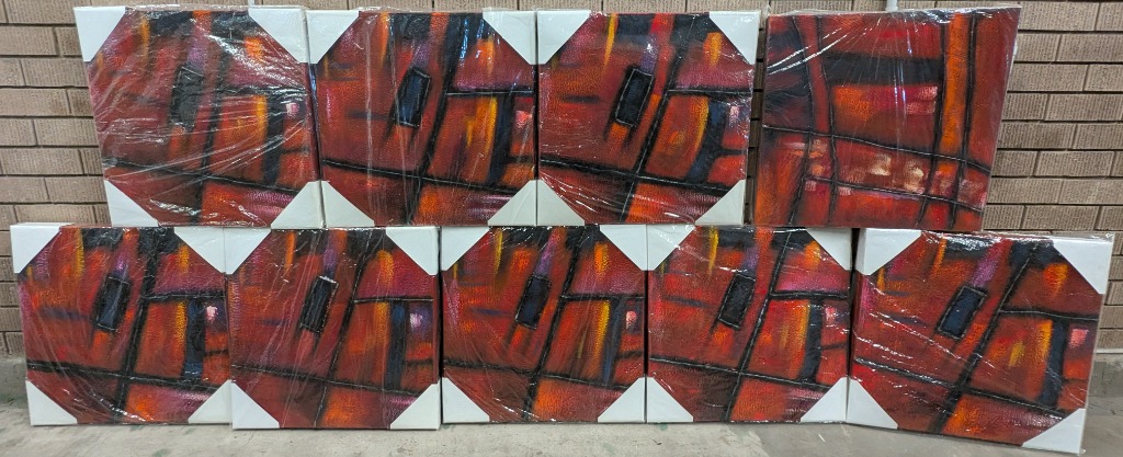 NINE OIL ON CANVAS ARTWORKSItem Size: Height: 60cm, Width: 60cmArtworks Stretched And Ready To HangCondition: Good - Refer To Images584844+20