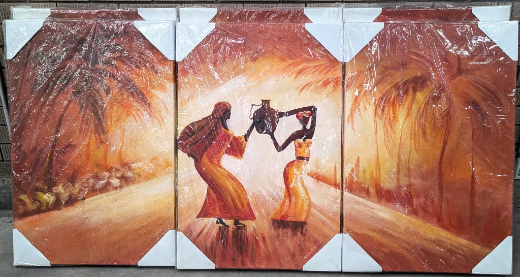 TWO THREE PANEL OIL ON CANVAS ARTWORKArtworks Feature Ladies With Pot Between TreesEach Panel Size: 90Cm X 60CmArtwork Stretched And Ready To HangCondition: Good - Refer To Images584844+35