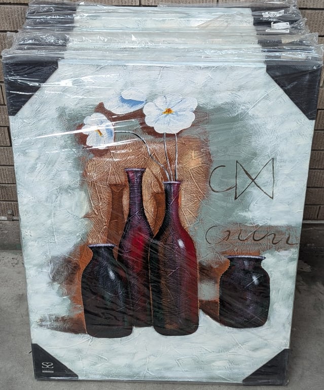 SEVEN OIL PAINTING ON CANVAS ARTWORKSItem Size: Height: 100cm, Width: 80cmArtwork Features Flowers In VasesArtworks Stretched And Ready To HangCondition: Good - Refer To Images584844+62