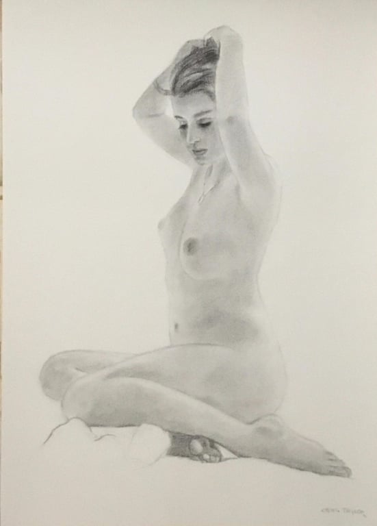 CRAIG TAYLOR (1952- )Original Charcoal Drawing On Canson PapaerTitle: Anette Fixing Her HairImage Size: 60cm x 41cmSignature Details: Signed Lower RightCondition: Good - Refer To Images488230+15