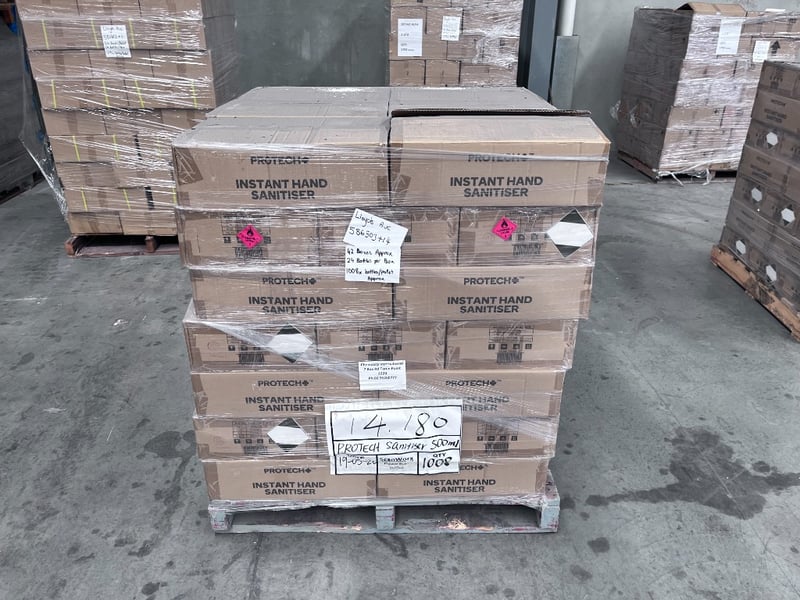 Pallet Lot of Hand Sanitizer - ABANDONED STOCK Description: - 42 Boxes Per Pallet. - 24 Bottles per Box. - Approx. 1008x Bottles Per Pallet BID FOR ENTIRE PALLET.Forklift onsite to help load onto trucks. Boxes/Bottles May be Subject to Damage, Frayed Protective Plastic, Dust and/or out of date Products. Located: Prestons 2170 Sydney, NSW Enquiry: Jonathan N | 0400 733 207 | [email protected]