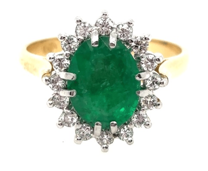 18CT YELLOW AND WHITE GOLD EMERALD AND DIAMOND RINGFeaturing An Oval Cut Emerald, Claw Set, 1.68Ct In Weight (9.7 X 7.8 Mm), And Deep Green In Colour. 16 Round Brilliant Cut Diamonds, Set Around Centre Stone, 0.26Ct In Total Combined Weight, Vs In Clarity And G In Colour. Ring Is 4.04 Grams In Weight And Finger Size LTotal Item Weight: 4.04gCondition: Good - Refer To ImagesThis valuation has been conducted by an independent third-party professional. The valuation amount is an assessment by the issuing valuer and does not reflect the auction value of the item.Any inquiries regarding the valuation should be directed to the issuing valuer (refer to contact details on the certificate), as Lloyds Auctions has no affiliation or influence over the valuation, the valuer, or the stated amount.Insurance Replacement Valuation Amount: $16,950.00CROSSDOCK162896+13