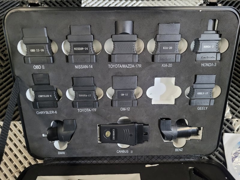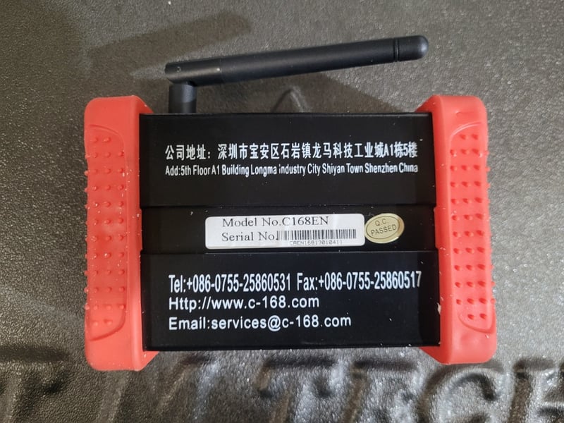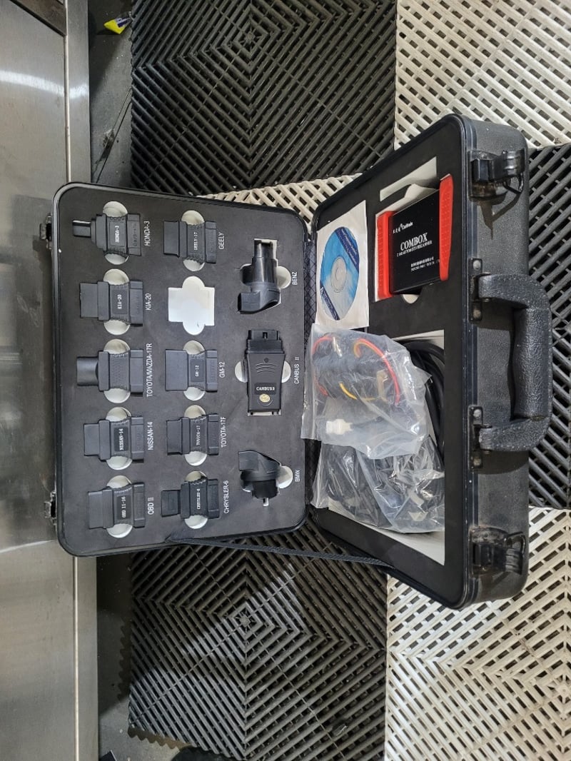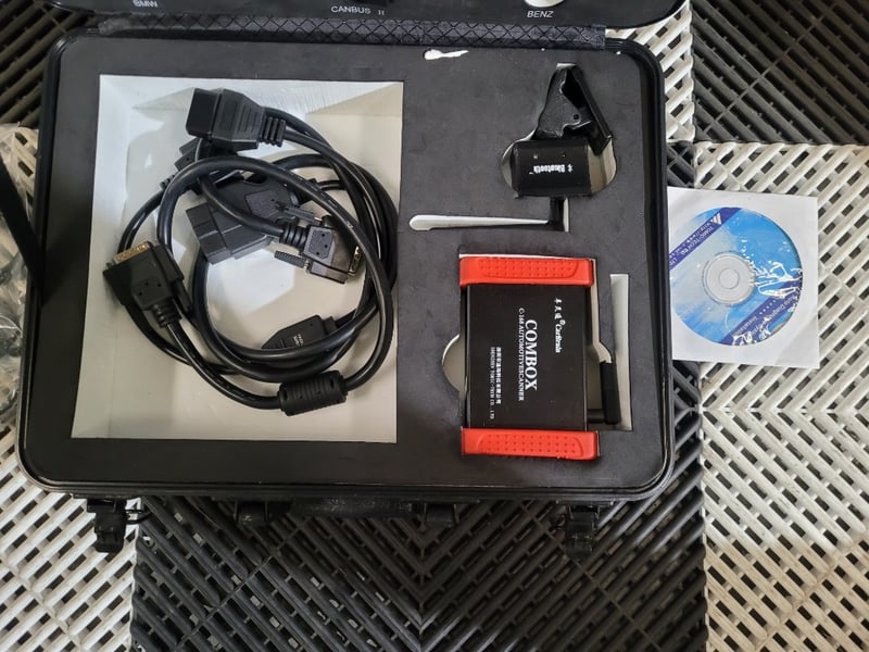 Description: T M TECH/Combox automotive scanner. model C168en, used, note used one missing connection part.