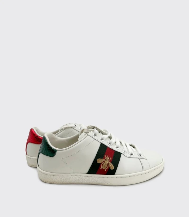 GUCCI WOMEN'S ACE TRAINER WITH BEEItem Size: Height: 10cm, Width: 10cm, Depth: 10cmCondition: 8.5/10Exterior: Some Dirt On Heels And Soles. Interior: Some Dirt And Marks Inside Shoe.Colour: White. Included: Shoes & BoxCondition: Good - Refer To ImagesCROSSDOCK162931+10