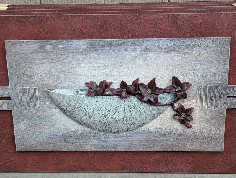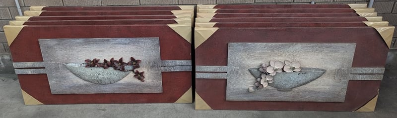 ELEVEN MIXED MEDIA FLOWER ARTWORKS Item Size: Height: 50cm, Width: 100cm, Depth: 5cm Artwork On Timber Base, Flower Colours Include White/Pink And Red/Black Note: Some Artworks Missing A Flower 584844+12