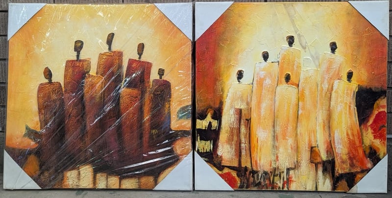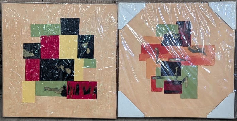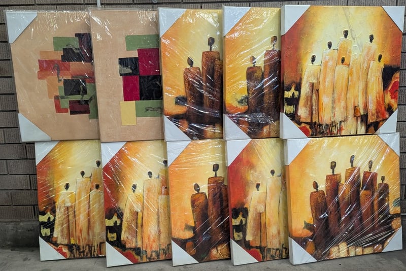 TEN OIL ON CANVAS ARTWORKS Item Size: Height: 60cm, Width: 60cm, Depth: 70cm Includes Candle And Abstract Themed Art Artworks Stretched And Ready To Hang 584844+15