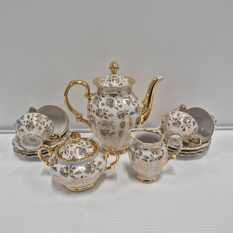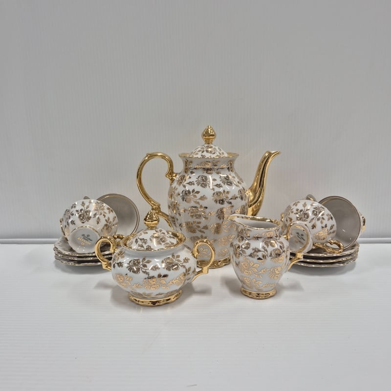 VINTAGE PORCELAIN TEA SET GOLD ANF FLORAL DESIGNEDCondition: Good - Refer To Images587674+3