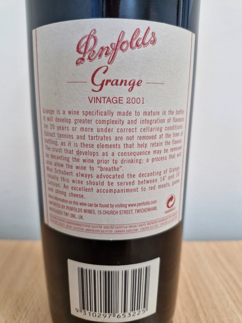 PENFOLDS GRANGE 2001, BIN 95, VINTAGE 2001, 750ml BOTTLETasting Notes:It is extraordinary how this wine has gained power, weight and complexity since first bottled; now majestic black fruits, licorice and chocolate / mocha notes run through the palate. Great tannins sustain and support the back-palate and finish. Please move to screwcaps; this wine would live forever. Drink 203096 pointsJames Halliday - Australian Wine Companion 2021It is always a treat to taste Australia’s most famous wine, Penfolds’ Grange cuvee (the word Hermitage has been dropped because of legal issues). The 2001 Grange is one of the few vintages of this cuvee to be composed of 100% Shiraz (the others being 1951, 1952, 1963, 1999, and 2000). Aged 17 months in 100% American oak, and tipping the scales at 14.5% alcohol, the 2001 is undeniably one of the top examples of this wine. At this stage, it appears to eclipse the 1998 and 1996. Inky/blue/purple to the rim, with a stunning perfume of blueberries, blackberries, chocolate, graphite, and earth, it boasts good acidity, huge tannins, magnificent concentration, and a multilayered, textured mouthfeel. It is a big, but impeccably well-balanced Shiraz that should shed some of its structure and tannin over the next 4-5 years, and be at its best between 2010-2030+.98 pointsRobert Parker - Wine Advocate (Oct 2006)
