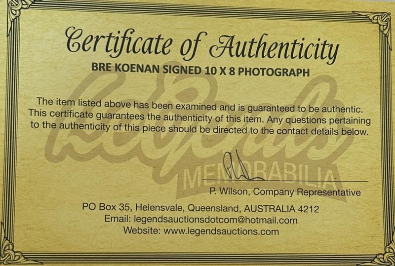 BRE KOENAN SIGNED 2023 AFLW PREMIERSHIP PHOTO Bre Koenan Personally Signed 10 X 8 Photo. Breanna Koenen Is An Australian Rules Footballer And Captain Of The Brisbane Lions In The Afl Women'S. The Item Is Accompanied By A Certificate Of Authenticity. Condition: Good - Refer To Images 584906+22